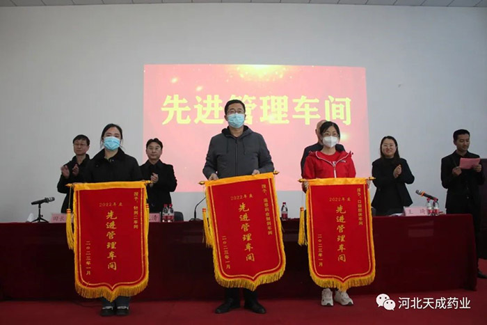 卯門生紫氣,兔歲報(bào)新春!告別難忘的2022,迎來全新的2023,回首過去的這一年奮斗路,展望天成新前程!2023年2月4日,天成藥業(yè)2022年度表彰大會(huì)暨迎元宵節(jié)文藝匯演,在三分廠活動(dòng)室隆重舉行!