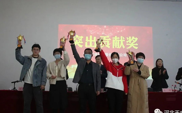在過去的一年里,天成人團(tuán)結(jié)一心,攻堅(jiān)克難,成功度過了兩次新冠疫情的襲擊,天成人不僅收獲了經(jīng)營(yíng)業(yè)績(jī)的增長(zhǎng),更收獲了清醒與自信。正是有了全體天成人的堅(jiān)持與付出,全體干部員工獻(xiàn)計(jì)獻(xiàn)策、團(tuán)結(jié)拼搏,終于取得今天的成就!董事會(huì)領(lǐng)導(dǎo)們?yōu)樵u(píng)選出來的先進(jìn)集體和先進(jìn)個(gè)人進(jìn)行頒獎(jiǎng)。