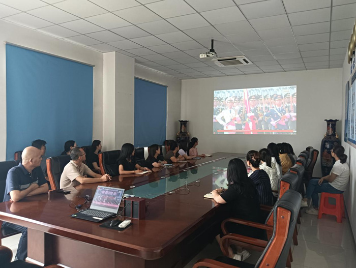 當(dāng)天上午,黨員們齊聚公司會議室,懷著崇敬的心情等待閱兵儀式開始。9時(shí)許,閱兵儀式正式拉開帷幕,當(dāng)屏幕中出現(xiàn)整齊列隊(duì)的受閱方隊(duì)、先進(jìn)精良的武器裝備以及翱翔天際的空中梯隊(duì)時(shí),大家紛紛被震撼,會議室里不時(shí)傳來陣陣贊嘆聲。
