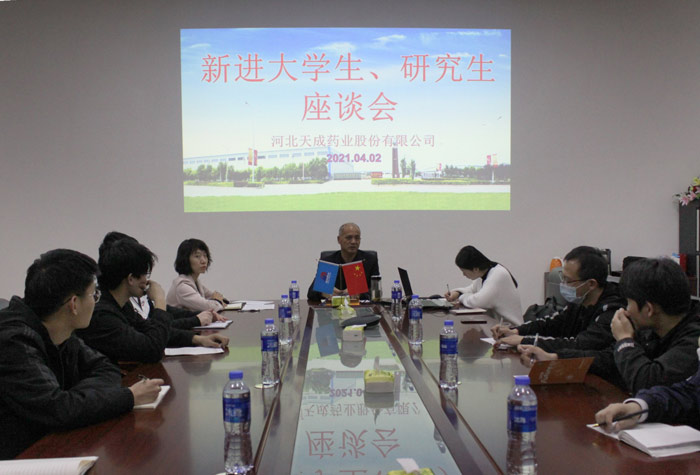 座談會(huì)在輕松、愉悅的氛圍中進(jìn)行,來自不同地方、不同學(xué)府的40位青年大學(xué)生結(jié)合自身學(xué)習(xí)經(jīng)歷進(jìn)行了簡單的自我介紹。“擊水三千已揚(yáng)帆,鵬程萬里正當(dāng)時(shí)”,在聽取新進(jìn)大學(xué)生的發(fā)言后,顥總首先對(duì)大家加入天成藥業(yè)表示熱烈歡迎,并向大家講述天成藥業(yè)五十年的發(fā)展歷程及企業(yè)的發(fā)展戰(zhàn)略,讓大家對(duì)企業(yè)有了更為深入的了解。顥總強(qiáng)調(diào),藥品關(guān)系到人類生命健康,他要求大家要有愛心、有責(zé)任心,要認(rèn)真學(xué)習(xí)《藥品管理法》,這體現(xiàn)出一個(gè)合格制藥人的責(zé)任。