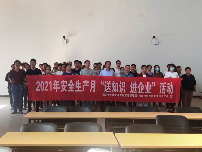 日前,滄州經(jīng)濟(jì)開發(fā)區(qū)應(yīng)急管理局聯(lián)合滄州經(jīng)濟(jì)開發(fā)區(qū)總工會(huì)啟動(dòng)了送“送知識(shí) 進(jìn)企業(yè)”活動(dòng)。6月17日上午,項(xiàng)目組來到公司三分廠培訓(xùn)室開展活動(dòng)。滄州經(jīng)濟(jì)開發(fā)區(qū)應(yīng)急管理局李延科長、滄州經(jīng)濟(jì)開發(fā)區(qū)總工會(huì)工作人員賈起新出席活動(dòng),滄州渤海專修學(xué)院李振濤講師進(jìn)行授課。