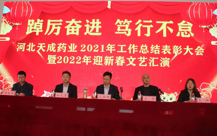 2021年已然過去,回顧這一年,我們與黨同慶百年華誕,我們細數黨和人民取得的累累碩果。盤點這一年,天成藥業緊跟黨的領導,在踐行“制好藥,為人民”的征途上,戮力同心,奮勇拼搏,攻堅克難,天成人同樣取得了令人欣慰的成績。站在兩個百年交匯處,感悟百年光輝史,賡續奮斗寫華章。為豐富職工文化生活,營造喜慶、感恩。拼搏的文化氛圍,展現天成藥業奮發有為的精神風貌,1月25日, 公司舉辦了“踔回奮進.篤行不息。一起向未來”--2021年工作表彰大會暨2022年迎新春職工文藝匯演活動。工作總結大會上30余個集體或班組以及100余名干部員工受到了表彰。