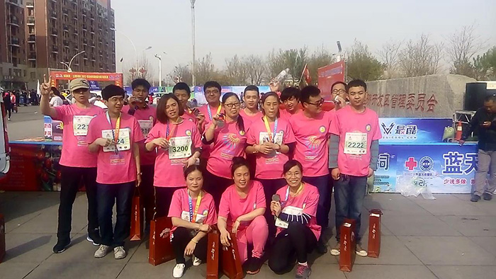 2017年4月9日,滄州市第四屆半程(含迷你)馬拉松賽圓滿結束,此次賽事,由滄州市長跑協會和開發區管委會共同承辦。我公司領導十分重視,積極組織,來自生產車間和后勤科室的18名健兒踴躍參加。女子組有:葉勇新、馮坤 、梁靜微 、托穎虹 、王文華 、張桂鳳、王春芬;男子組有:盛勇軍、唐廣勇、伊銀超、馬鵬舉、蔣觀榮 、馬忠杰、劉毅鵬、李東亮、劉建營、劉振楠、鄭福貴。他們積極參與,認真準備,在賽場上放飛青春與激情,展現了天成人高昂的斗志與活力。經過與2000多人的激烈角逐,來自二分廠輸液二車間的張桂鳳獲得了女子迷你馬拉松賽的第9名的好成績。