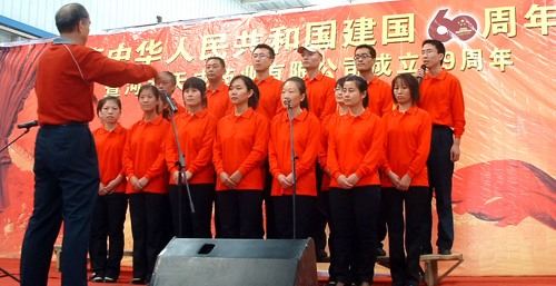 2009年9月29日是我公司建廠39周年改制11周年的日子,又恰逢新中國(guó)成立60周年,和著全國(guó)人民大慶的節(jié)拍,我公司于2009年9月30日舉行了隆重的慶典活動(dòng)。大會(huì)由公司副總王顥主持,公司副總田長(zhǎng)友在會(huì)上做了2009年1-9月份工作匯報(bào),副總徐福河宣讀了2009年度工資調(diào)整方案,之后公司董事長(zhǎng)兼總經(jīng)理王振剛做了關(guān)于企業(yè)文化的重要報(bào)告。領(lǐng)導(dǎo)講話結(jié)束后,舉行了“唱紅歌”大合唱歌詠比賽,全公司共有十九個(gè)代表隊(duì)參加了比賽。最后,在全體干部員工“歌唱祖國(guó)”的歌聲中,慶典活動(dòng)圓滿結(jié)束。該活動(dòng)極大地振奮了干部員工的精神,弘揚(yáng)了企業(yè)文化,為公司今后的發(fā)展指明了方向。
